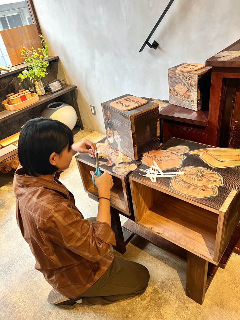 あかり:大阪に木箱屋さんがあるってこと知らなかったし、ネットで見た時に「箱屋さん、何それ?」って思って(苦笑)。大阪って桐箪笥とか包丁とかは聞いたことあるけど、箱屋さんって聞いたことなかったし。「箱屋さん」って言ってるだけでかっこいいなー。誰も知らんとこにおるのかっこいいなーと思って(笑)。今も作業が難しいところも多いですけど、難しい方が私は楽しいから。最初できなかったのが、できるようになるのも楽しいし。なんか木 1 個ずつ表情が違うのを見てるのもすごく楽しい。