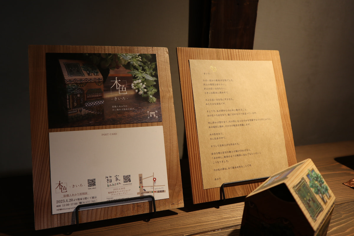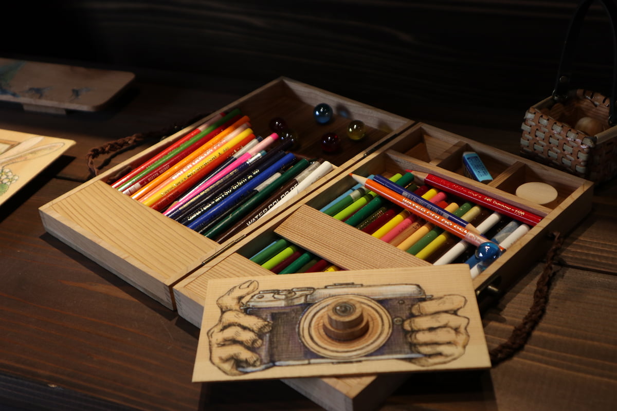 あかり:自分で欲しい箱としては、画材入れの箱が欲しいから作りたいなってのがあります。催事で百貨店に立ってる時にも、「日本画書いてるんですよ」という方から、画材入れる箱作ってくださいっていう声もあったから、もしかしたらそういう方面の人に需要あるかもしれないです。ちょっと作ってみたいなというのがあります。